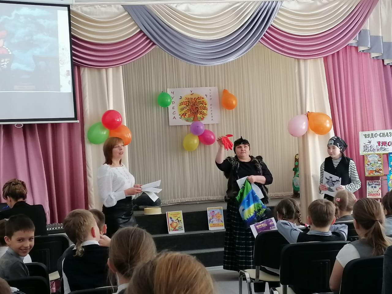 Сегодня для учащихся начальных классов Серединской СОШ, состоялся праздник закрытия Недели детской и юношеской книги, посвящённый 140-летию со дня рождения Корнея Ивановича Чуковского, который провели заведующая Серединской сельской библиотекой и библиотекарь Серединской СОШ. Получилось яркое весёлое представление, на которое пришла сама королева Книга (Лебедева Маша) и герои книг Корнея Чуковского: Доктор Айболит (Зимнухов Иван) сестра доктора Айболита Варвара (Заливалова О.А.) и Бармалей (Дроздова Юля). Было много конкурсов и загадок, с которыми ребята справились замечательно! Учащиеся 2-го класса прочитали стихи, посвященные Корнею Чуковскому. В завершение праздника прошло награждение юных художников, которые приняли участие в конкурсе рисунка по сказкам К.И. Чуковского. | |