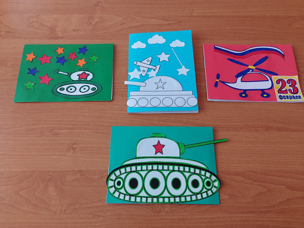 В преддверии Дня защитника Отечества юные читатели смастерили открытки для своих пап, братьев и дедушек. Открытки были выполнены в технике "аппликация". Ребята проявили фантазию, поэтому их работы получились яркими и оригинальными. | |