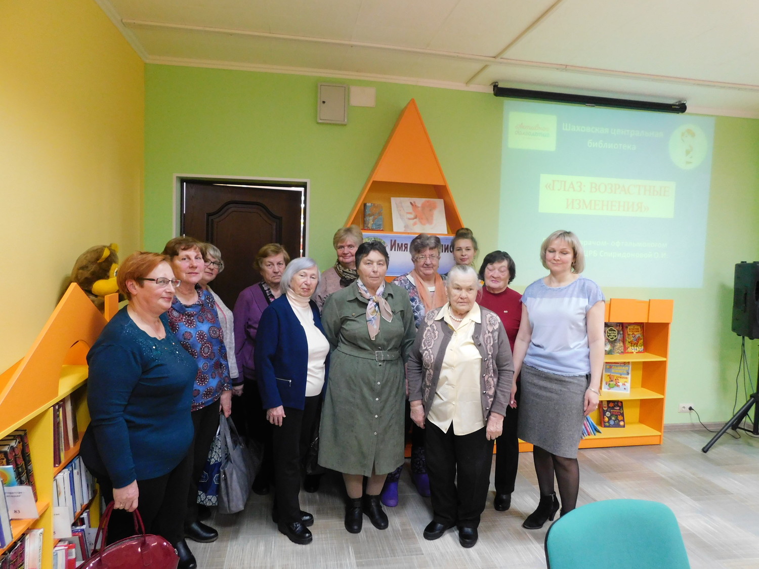 12 марта в Шаховской центральной библиотеке участники объединения «Счастливое долголетие» встретились с врачом-офтальмологом Спиридоновой Ольгой Ивановной. Доктор отметила, что с возрастом организм человека претерпевает различные изменения, которые касаются и наших глаз. В пожилом возрасте обменные процессы замедляются, ухудшается кровообращение, появляются сопутствующие заболевания, которые отрицательно сказываются на глазах. В своей лекции Ольга Ивановна подробно рассказала о строении глаза, о причинах возникновения катаракты, глаукомы и других заболеваний, а также ответила на многие вопросы слушателей. Участники встречи горячо благодарили Ольгу Ивановну за интересную беседу. | |