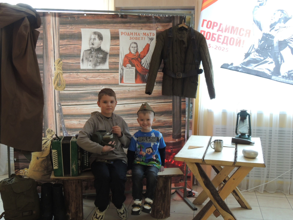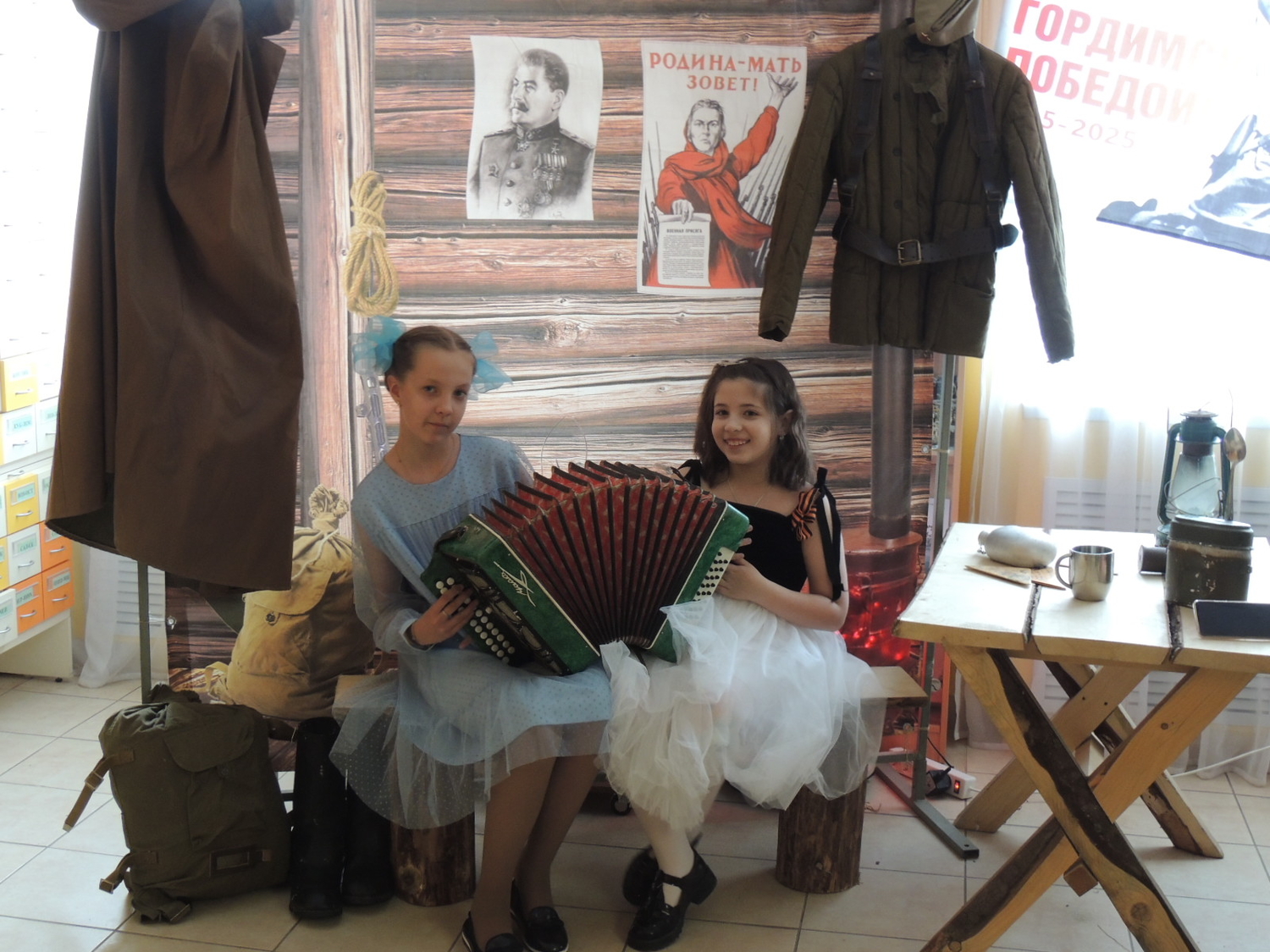 Весь вечер в стенах библиотеки работала фотозона «Уголок памяти». Все желающие смогли окунуться в атмосферу военного времени и сделать фото в оригинальной фотозоне, изображавшей землянку с плащ-палаткой, походным рюкзаком, гармонью, фляжкой и тд. | |