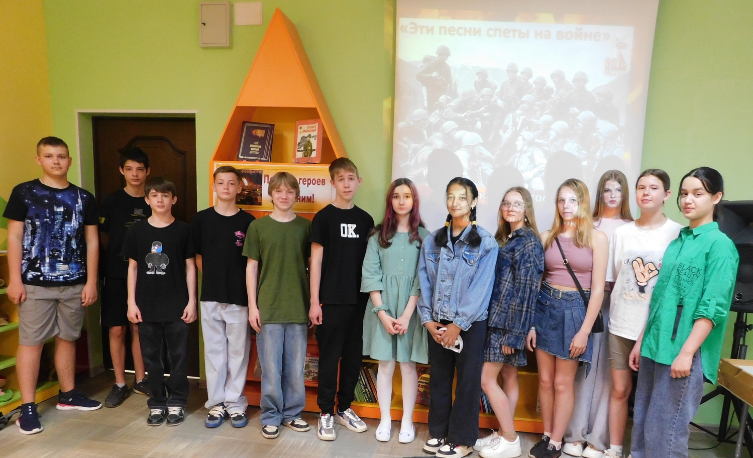 30 мая гостями детской библиотеки стали учащиеся 7-8-х классов Шаховской школы №1. Ребята посетили музыкальную гостиную «Эти песни спеты на войне» и познакомились с легендарными песнями, благодаря которым наш героический народ смог выжить и победить в страшные годы Великой Отечественной войны. У каждой песни, родившейся в военные годы, своя история, свой путь и своя судьба. Школьники узнали об истории создания песен «Священная война», «Катюша», «В землянке», «На Безымянной высоте», а закончили мероприятие дружным исполнением песни "День Победы". | |